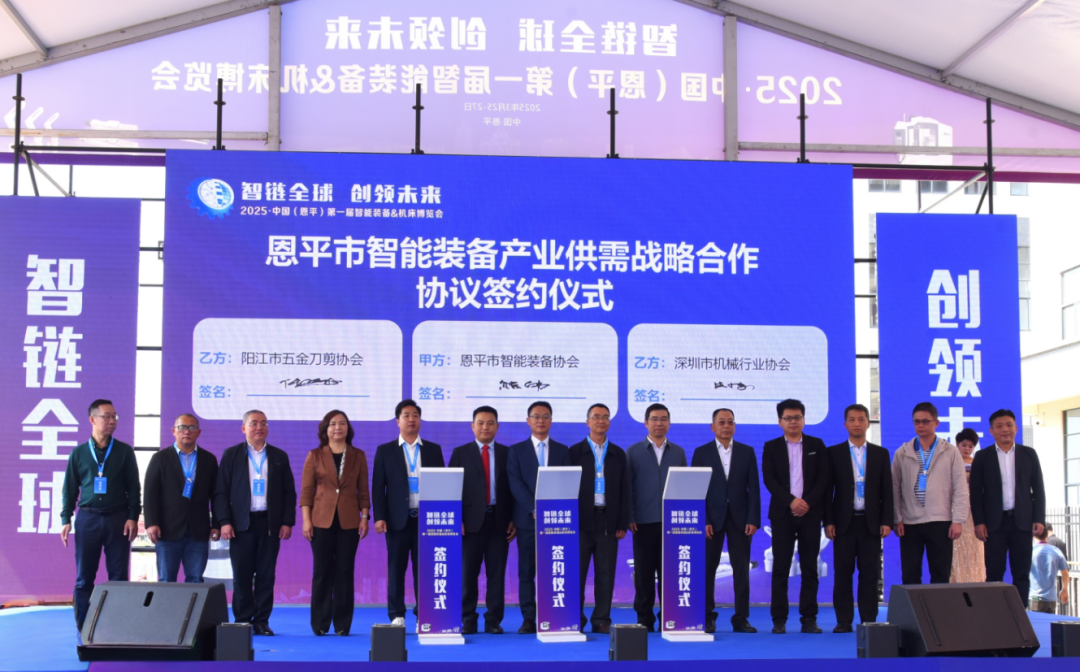 恩平市智能装备协会与阳江市五金刀剪协会、深圳市机械行业协会签订供需战略合作协议。未来,三方将进一步加强区域间产业合作,实现资源共享、优势互补,促进智能装备产业供需对接,推动产业协同发展。