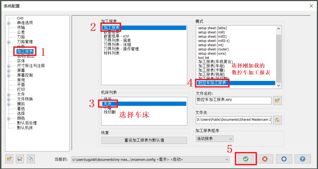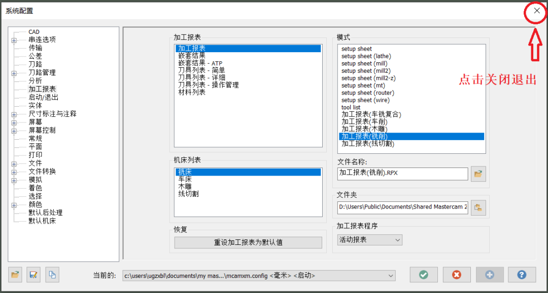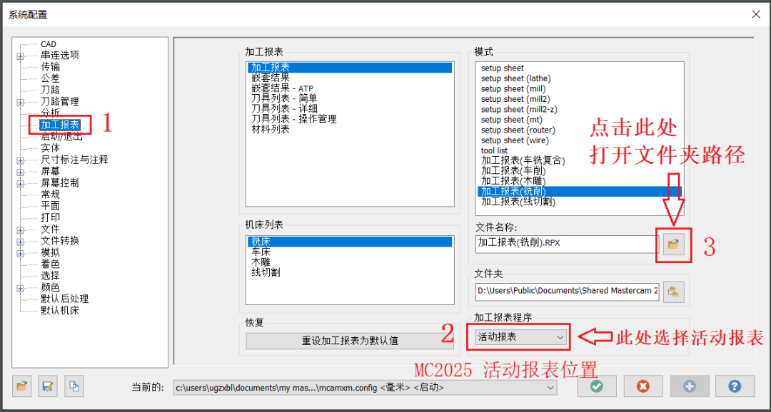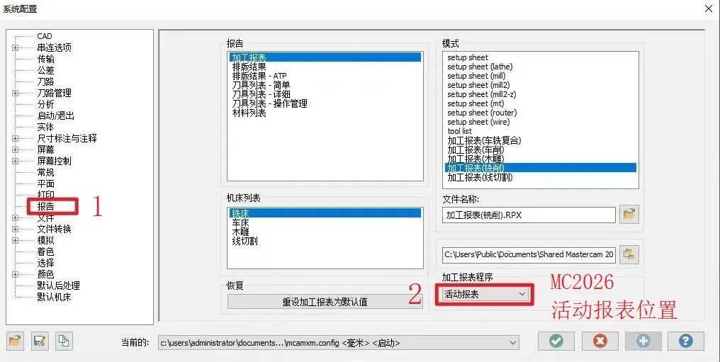 点击上方蓝色字Mastercam2017-2026数控车程序单下载链接在文末安装以2025版本为例其它版本安装大同小异1.右键解压下载好的安装包,得到以下文件2.启动 mastercam2025 软件 点击左上角文件菜单3.点击 配置4.在打开的系统配置中 选择1.2.3位置(不同软件版本位置不同) 一定要选活动报表 最后点击箭头所示文件夹 打开文件安装路径温馨提示不同版本活动报表位置不同MC2017版本活动报表如下图位置MC2026版本活动报表如下图位置5.在弹出的文件夹中 鼠标点击进入 reports 文件夹6.进入 reports 文件夹后的界面效果7. 此时返回下载的解压后的文件中 (就是第一步解压的文件夹中) 复制解压出来的所有文件夹8. 把复制的所有文件 粘贴到第6步的reports 文件夹中 点击替换所有文件即可9.点击右上角X关闭系统配置 然后关闭Mastercam软件10.重新启动Mastercam2025软件 再次点击文件 点击配置 打开系统配置 按照下图所示 依次选择1.2.3.4位置 (看清楚选,错了要不得) 最后 点击 √ 退出即可 11.点击是12.打开你编好的数控车刀路图 点击机床 选择创建13. 在弹出的加工报表窗口中 按需添加自己公司信息 点击 √ 确定14. 出表成功关注公众号进入公众号,后台回复 “312”进入公众号,后台回复 “312”进入公众号,后台回复 “312”即可自动获取下载链接平台提供的内容均来自互联网仅限学习与交流使用,不得用做商业用途下载学习完后,请在24小时内删除如有侵权请联系我们及时删除如果对您有帮助劳烦您右下角点个“在看”+'赞'