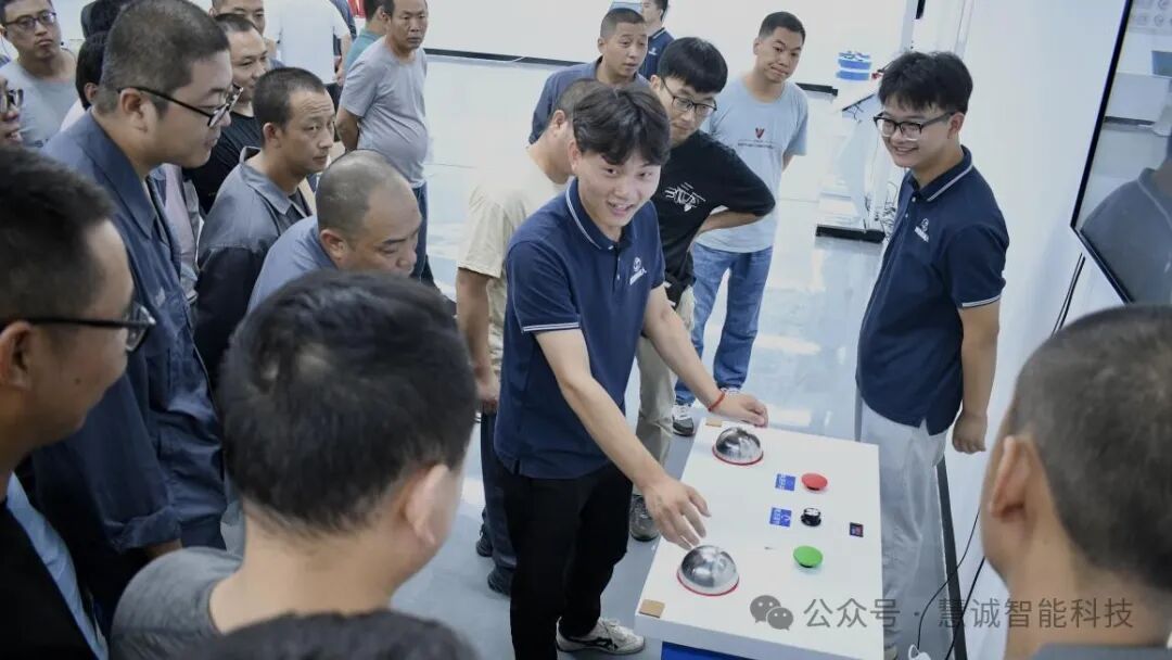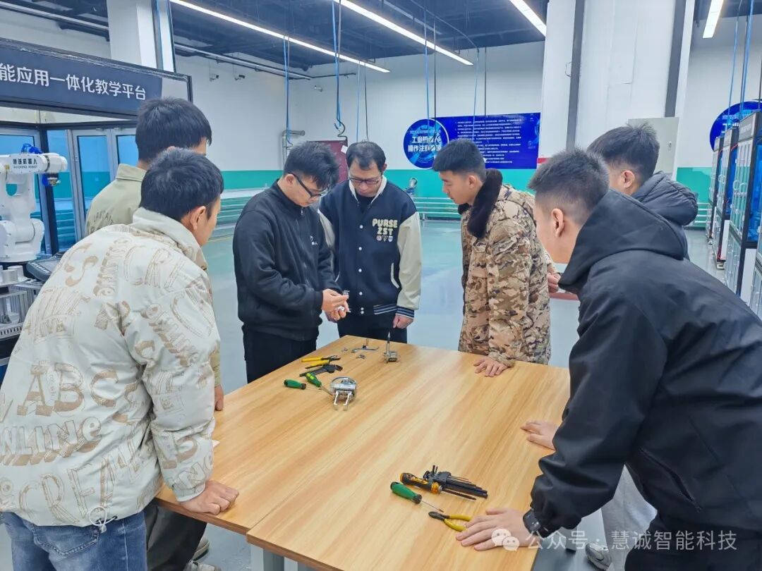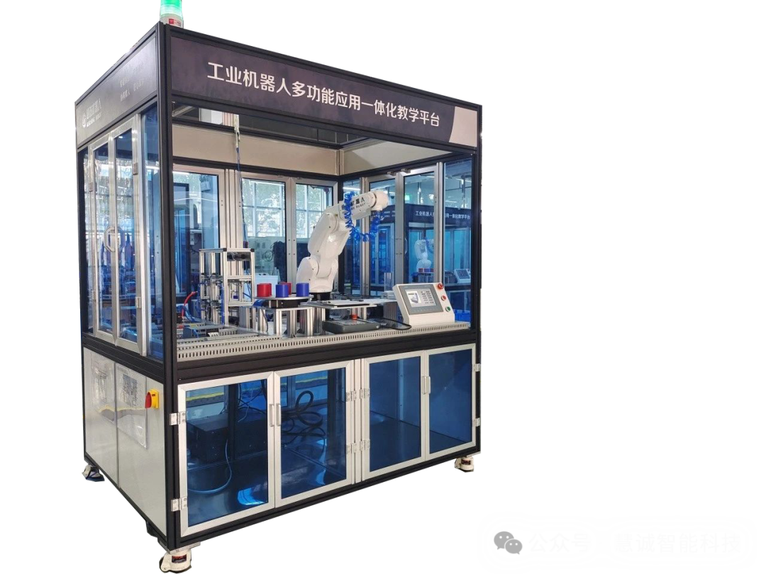 作为本次退役军人培训方,慧诚使用公司自主研发的工业机器人多功能应用一体化教学平台作为本次培训的教学设备,是《工业机器人系统操作员》《工业机器人系统运维员》等级考证设备,满足人社部工业机器人系统操作员、工业机器人系统运维员初中级等级鉴定。本套设备是专门为工业机器人专业及机电一体化相关专业进行工业机器人综合应用实训教学,共有十个可供学习的模块,分别是机器人本体,PLC控制模块,轨迹训练模,操作控制模块等,基本涵盖了工业机器人,自动化行业集成所有领域。
