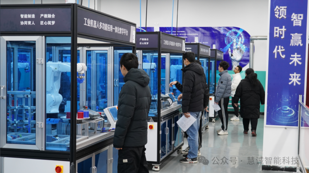 依托此设备和无极智享智能制造公共实训基地,慧诚提供工业机器人系统操作员、工业机器人系统运维员等技能等级认证考试的考前培训、考场场地支持、考试设备提供等服务。