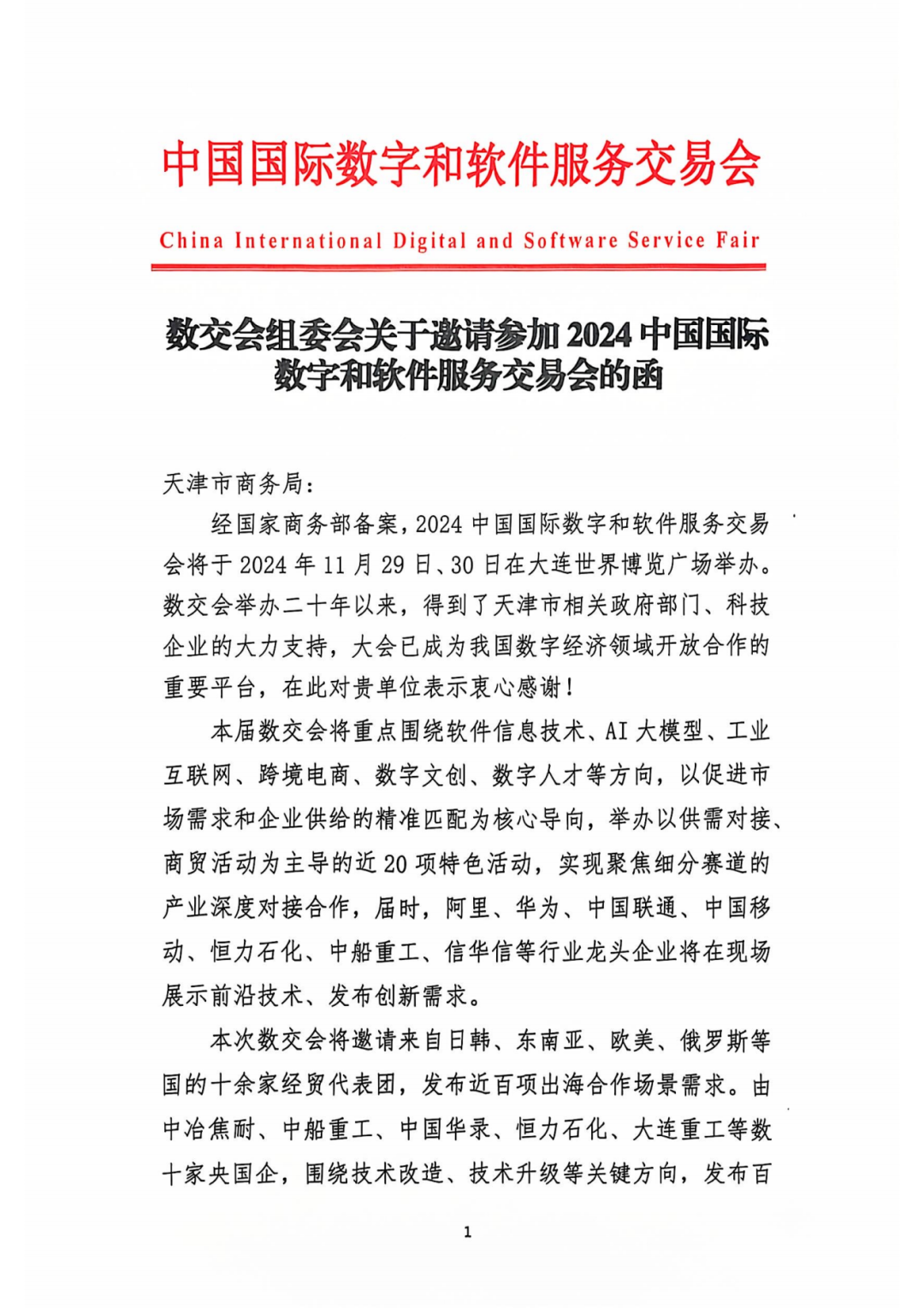 由中国电子信息行业联合会、大连海创投资集团有限公司主办的“2024中国国际数字和软件服务交易会”于2024年11月29日-30日在大连世界博览广场召开。本届数交会以“数实融合,新质领航软件产业升级”为主题,将重点围绕软件信息技术、AI大模型、工业互联网、跨境电商、数字文创、数字人才等方向,举办以供需对接、商贸活动为主导的近20项特色活动。届时将汇聚百余名行业顶尖专家现场深入探讨数字技术的热点话题,促进数字经济领域的国际交流与合作,推动行业的蓬勃发展。