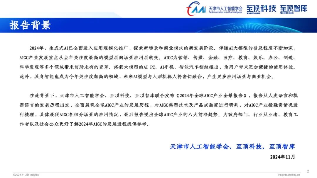 2024年11月16日,“2024 AI创新者大会暨PEC提示工程峰会”在北京隆重举办。会上,天津市人工智能学会、至顶科技、至顶智库联合发布了《2024年全球AIGC产业全景图谱》和《2024年全球AIGC产业全景报告》。