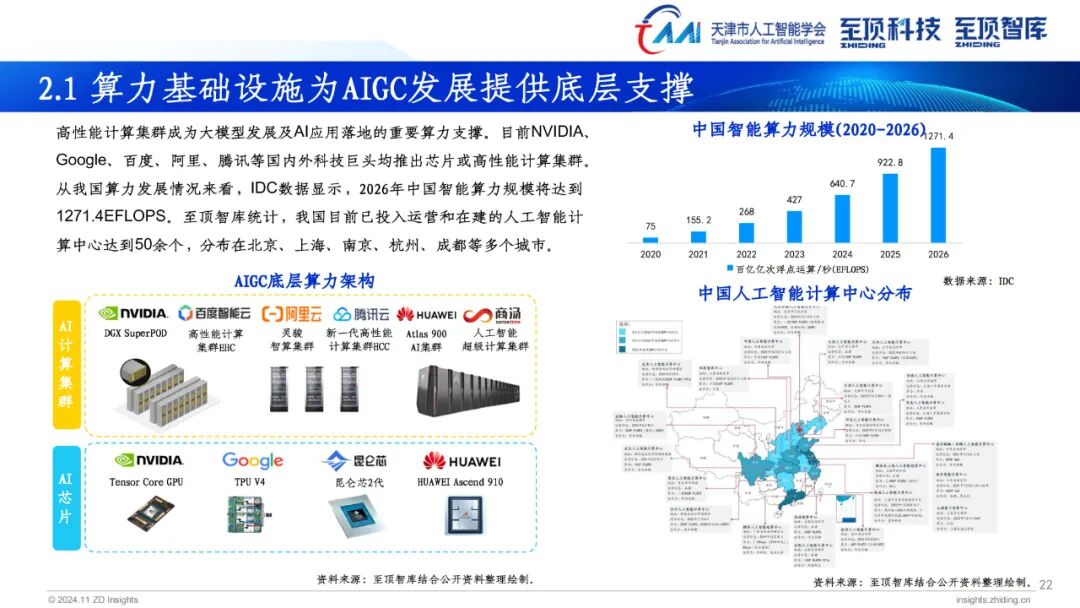 据介绍,《2024年全球AIGC产业全景图谱》主要分为三层,即基础设施层(AI服务器、AI计算集群、AI芯片、MaaS平台、AI数据服务);模型层(通用大模型、行业大模型);场景应用层(智能助手、金融、医疗、办公、教育、奥运、智能汽车、营销、影视、法律、政务)。图谱中涉及各领域全球代表性企业和相关机构,为读者提供更为详实的参考信息。
