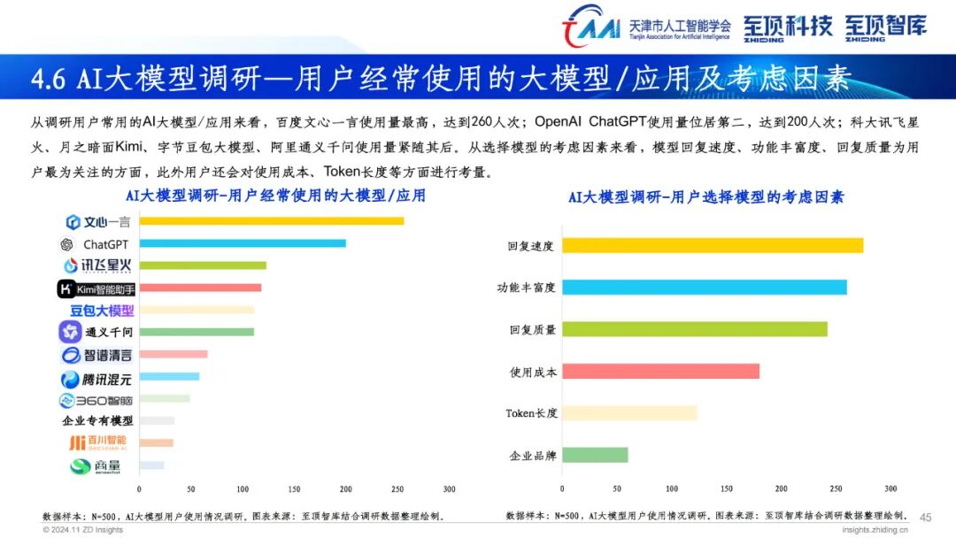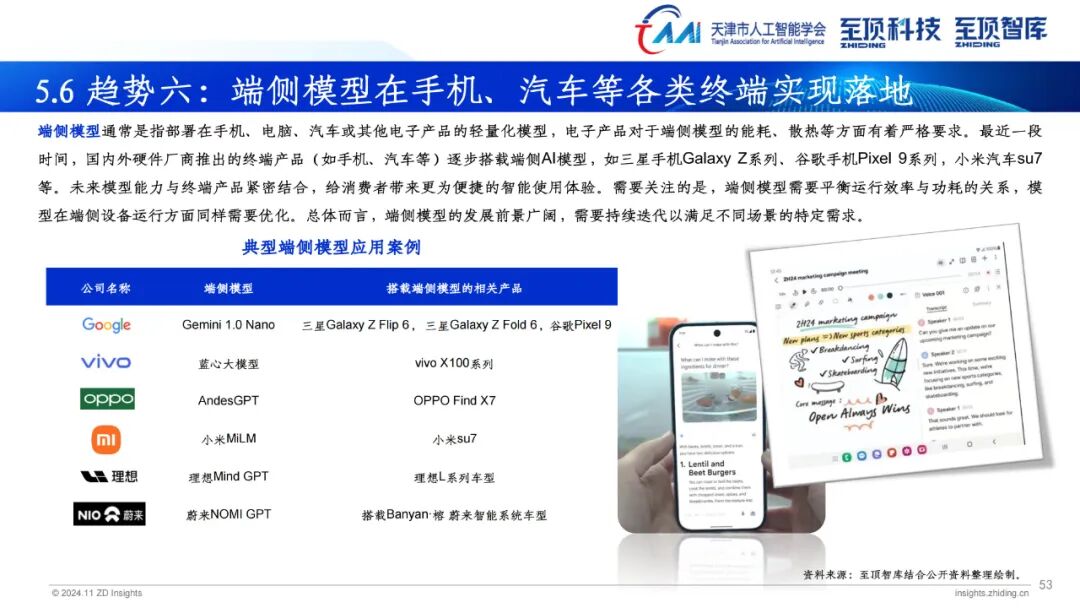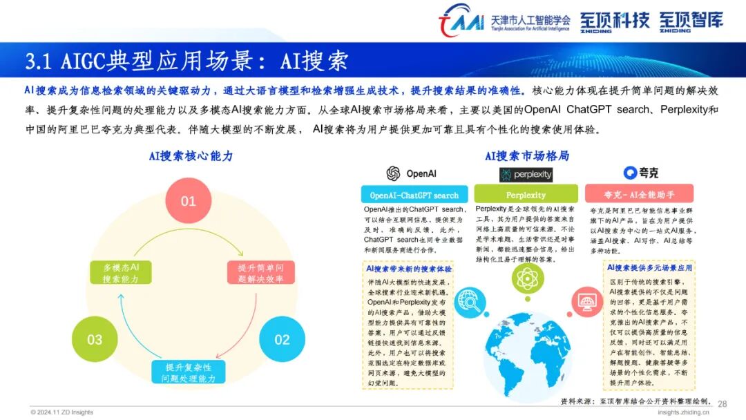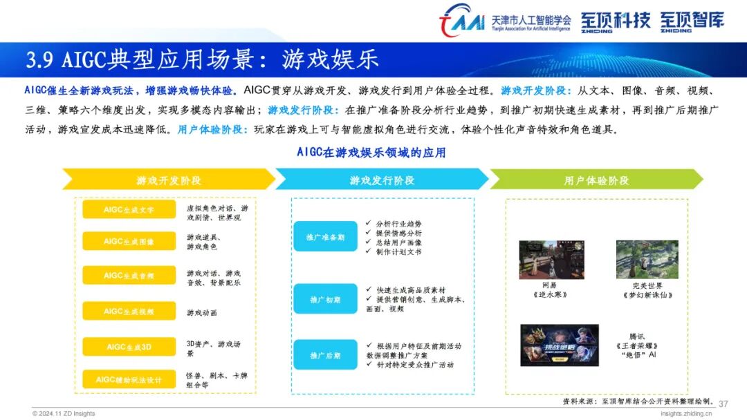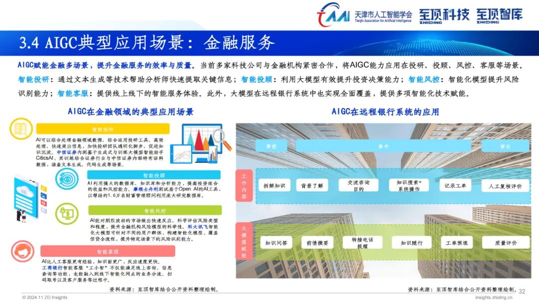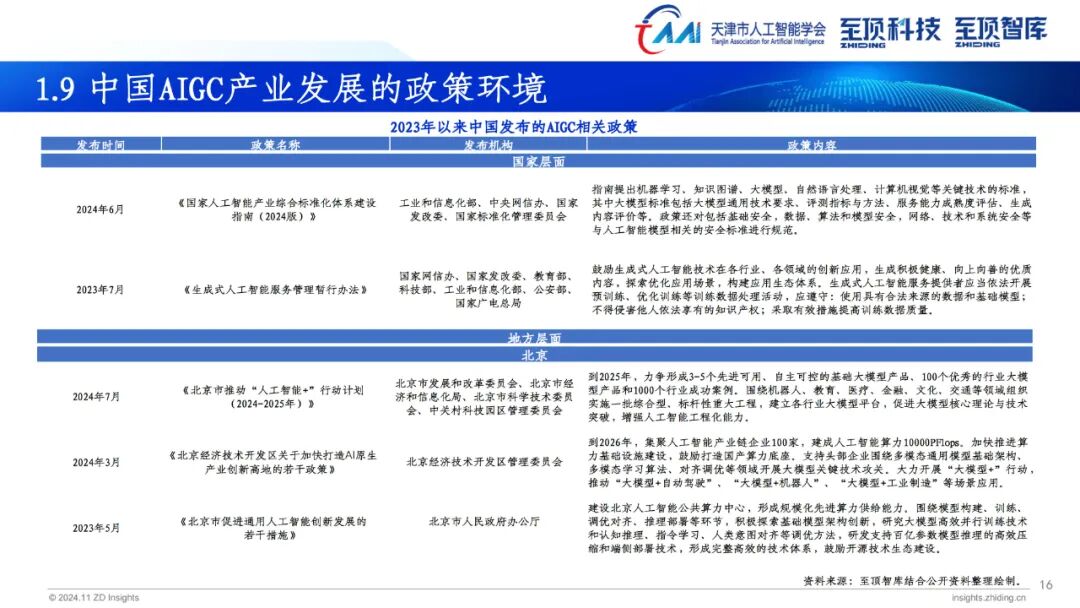 2024年,生成式AI已全面进入应用规模化推广,探索新场景和商业模式的新发展阶段。伴随AI大模型的普及程度不断加深,AIGC产业发展重点从去年关注度最高的模型层向场景应用层转变。AIGC为营销、传媒、金融、医疗、教育、娱乐、办公、制造、科学发现等多个领域带来前所未有的变革。搭载大模型的AI PC、AI手机、智能汽车相继推出,为用户带来更加便捷的使用体验。此外,具身智能也成为今年关注度颇高的领域,未来AI模型与人形机器人将密切融合,产生更多应用场景与商业机会。