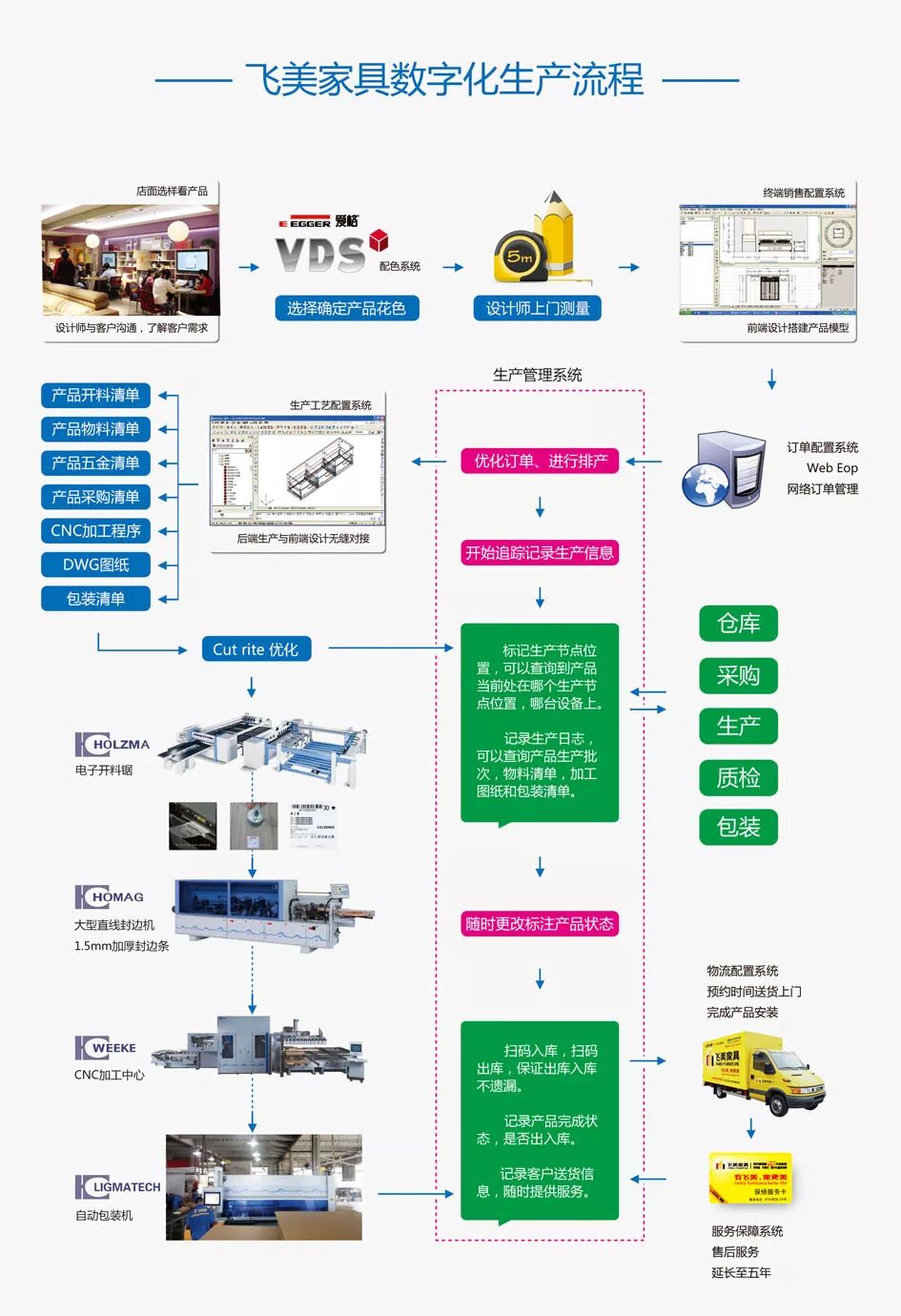 据评定飞美家具的信息化建设高于同行业75.51%企业,高于全国76.5%企业。定制家具服务的行业标准与规范已逐步形成,智能定制的生产流程也越来越成熟,信息化与工业化在各个环节深度结合,企业才能持续发展。