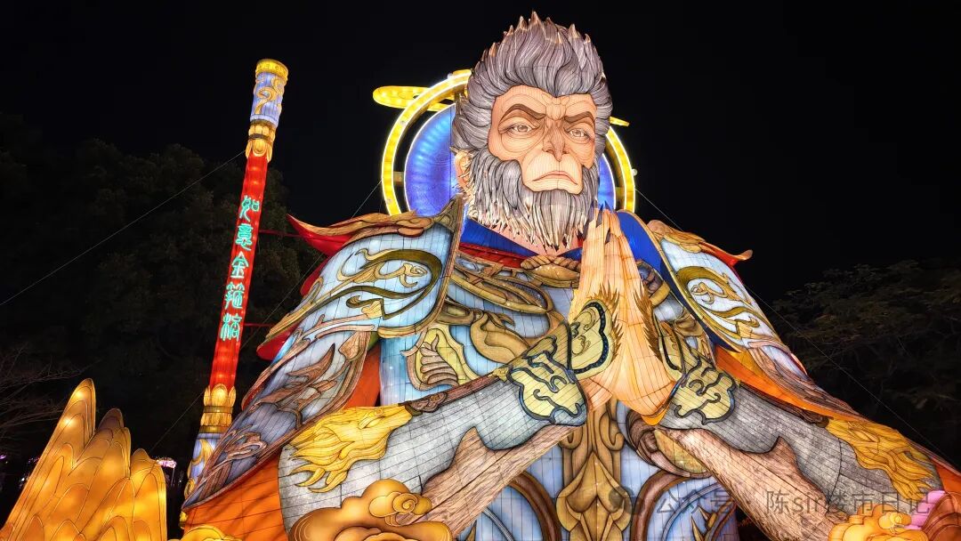 本次灯会位于南沙湾连片的景区里占地870亩,主游线路超3公里涵盖蒲洲花园、南沙天后宫景区和滨海公园等3个旅游景区灯会作品聚合大湾区11个城市的元素由1000多名非遗工匠精心打造是目前国内占地面积最大、灯组最多、展期最长、参与城市最多的灯会