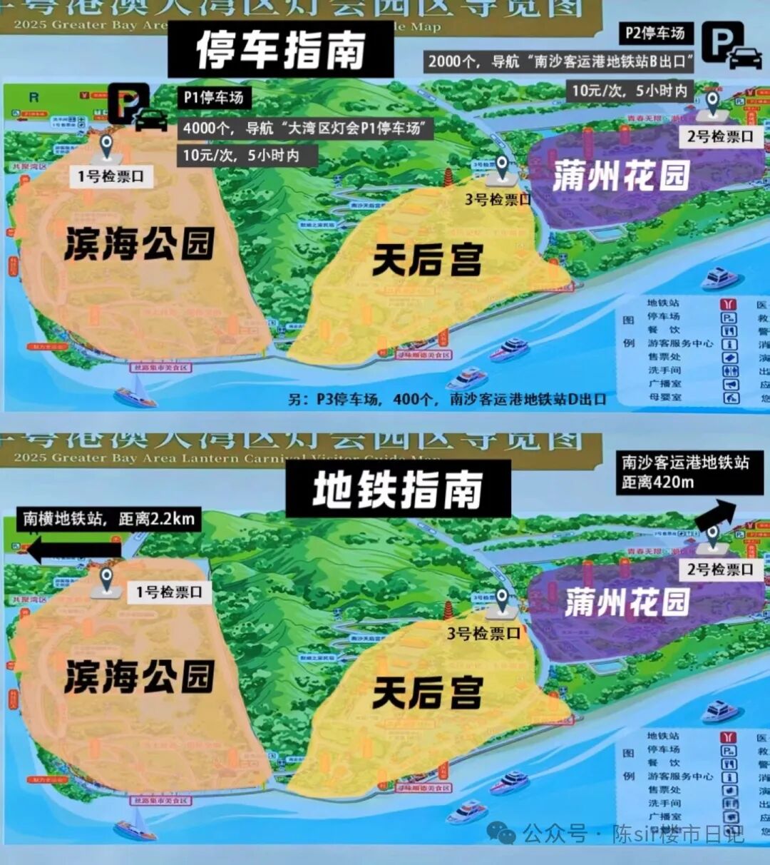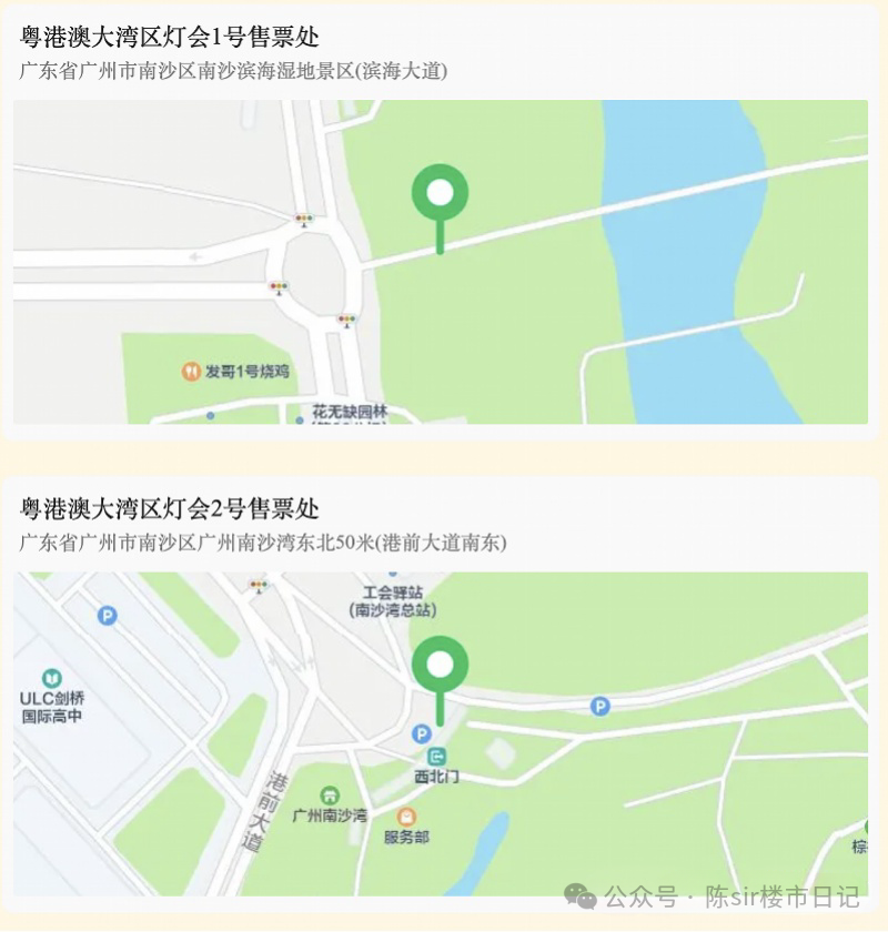 4.关于线路:自驾导航到粤港澳大湾区灯会1号售票处,然后停好车,打个滴滴或者出租车去粤港澳大湾区灯会2号售票处,这样你就可以直接从2号售票处一直走到1号售票处,不走回头路,出来立马可以拿车回家。