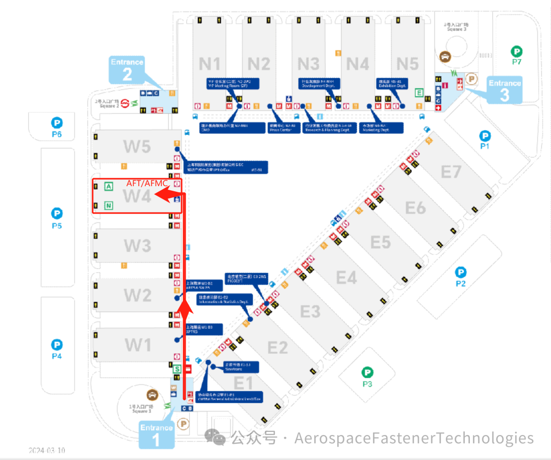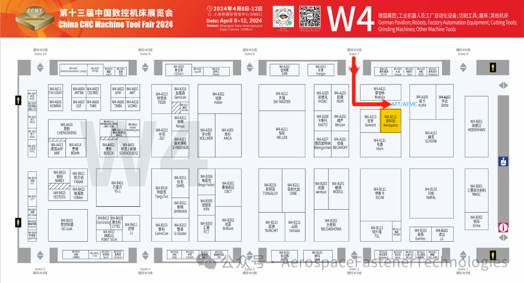 Tips:AFT/AFMC英科钛展台靠近W4馆的7号门,如上箭头标志线