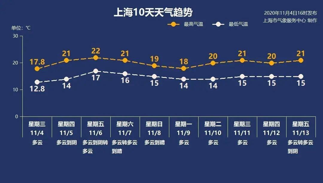 本周后期,上海都是晴或多云的好天气,气温稳中有降,特别是双休日两天,天气晴好 ,气温适宜,秋游正当时。