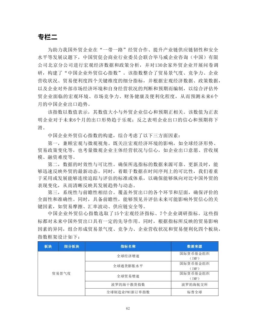 报告权威发布的“中国企业外贸信心指数”,整合了贸易景气度、竞争力、企业营收状况、贸易便利度四个关键维度的细分指标,综合评估外贸企业面临的宏观环境、市场竞争力、财务健康及便利化程度。