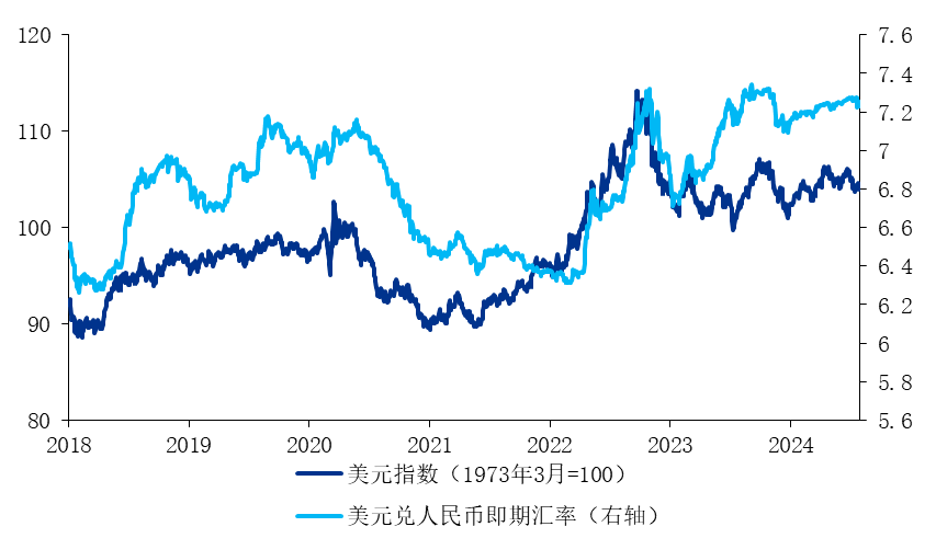 图:人民币兑美元汇率与美元指数。数据来源:CEIC,毕马威分析