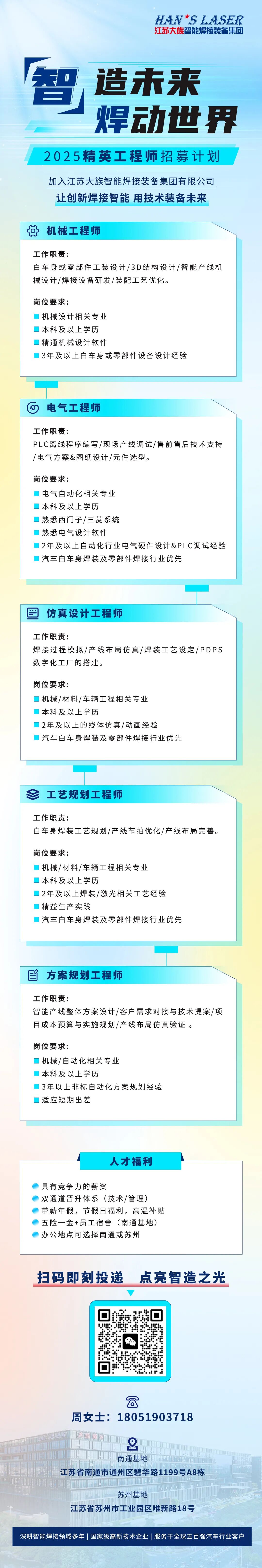 "智"造未来,"焊"动世界 | 江苏大族智能焊接装备集团2025精英工程师招募计划!