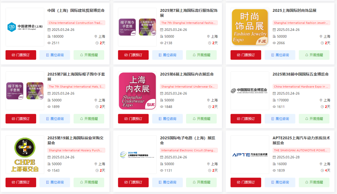 关注【展会全知道】微信公众号,在聊天对话框内回复【上海展会】查看近期上海展会信息