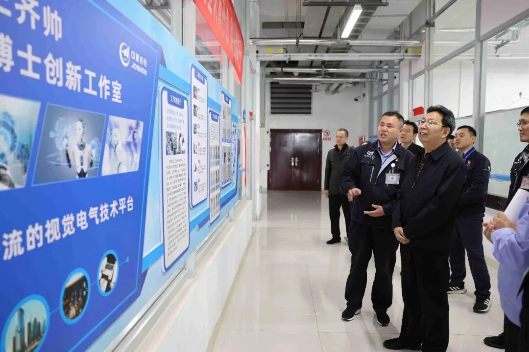 开幕式结束后,杜振卿、朱云松等来到竞赛的赛前培训场所、理论知识考场和实践操作考场进行实地查看,详细了解相关准备情况,并给予充分肯定。随后,一行人到河南省国防邮电工会授牌的“陈优佳创新工作室”和2022年新成立的“王齐帅博士创新工作室”参观调研,听取工作汇报并给予指导。