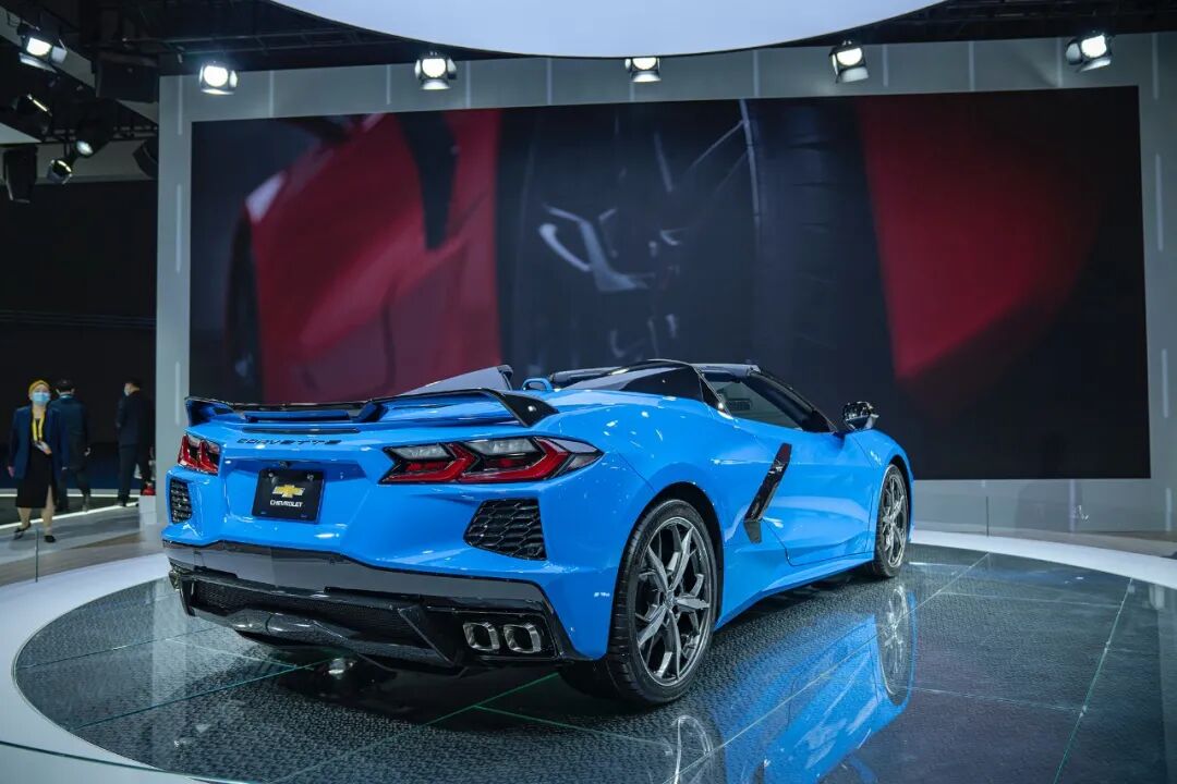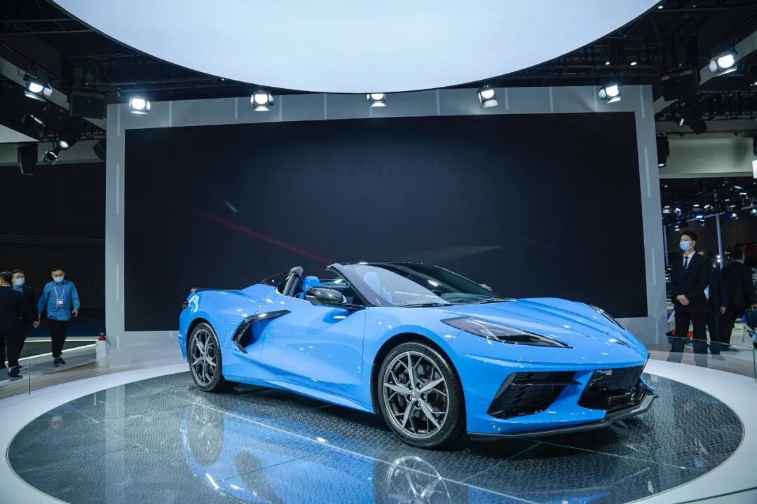通用汽车在展台最显著位置展出的是一辆蓝色的全新雪佛兰科尔维特Stingray硬顶敞篷版,科尔维特被誉为“美国国宝级跑车”我们看到的是这一传奇跑车的第八代车型。它配备Z51高性能套件,可在三秒内完成0到百公里加速,兼具速度与型格。它的两件式硬顶可在时速48公里内一键开启,全程仅需16秒。