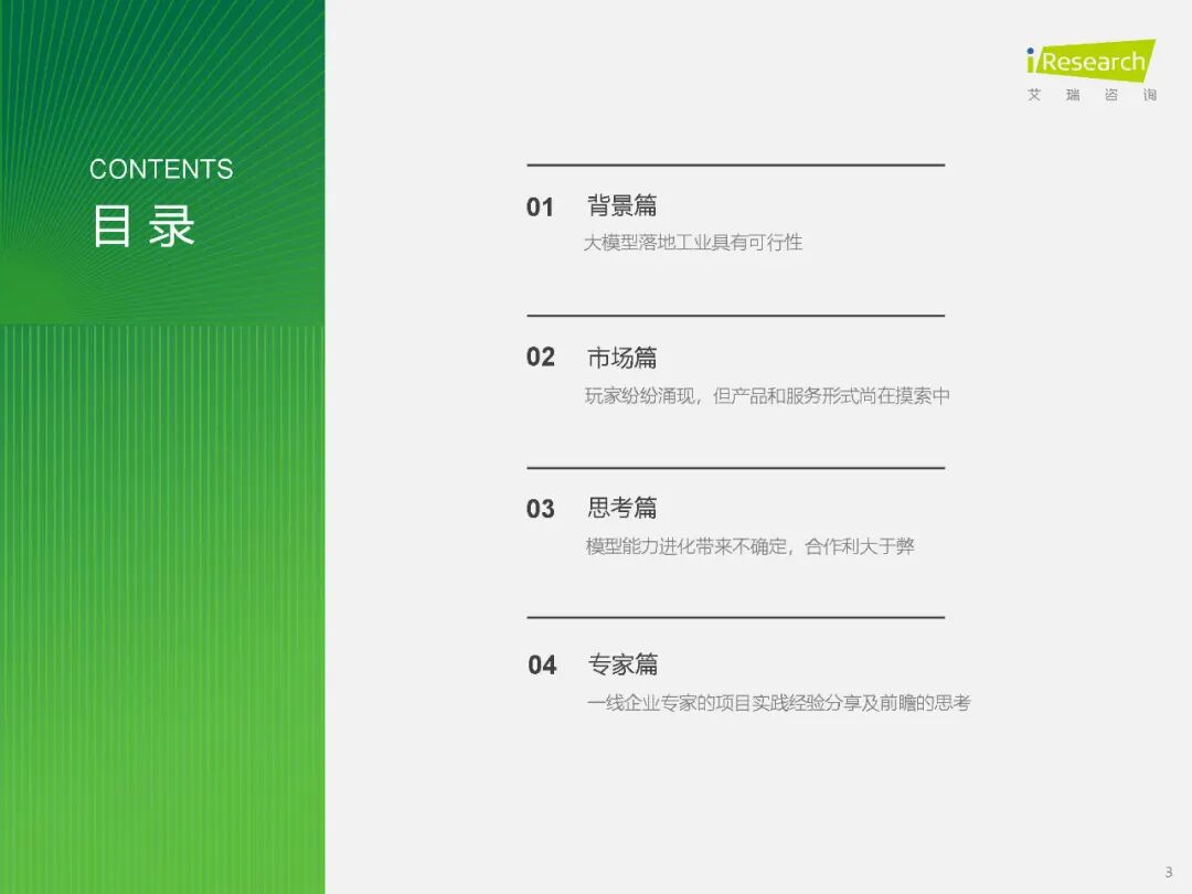 【专家之声:工业大模型的未来展望】 在报告的附录篇中,我们收集了来自卡奥斯、格创东智、天融信、中移(上海)产业研究院等业内专家的观点。他们普遍认为,工业大模型技术将不断进化,与企业的各种数据紧密结合,深入到工业智能里面的核心生产制造环节。同时,大模型的自我进化、自学习能力会越来越强,逐步赢得B端市场的信赖。