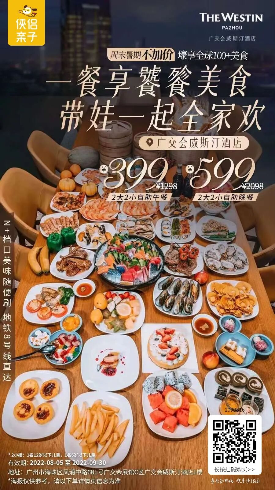 暑期中秋不加价!¥399起秒广交会威斯汀酒店自助餐!适用2大2小(1名12岁以下+1名6岁以下),一餐壕享全球100+美食,N+档口饕餮美味随便刷,地铁8号线直达!带娃食到饱!