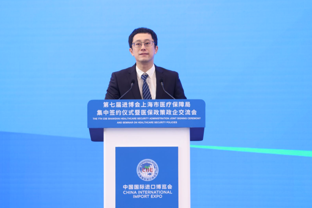 11月8日上午,第七届进博会上海市医疗保障局集中签约仪式暨医保政策政企交流会在国家会展中心(上海)顺利举办。作为第七届进博会医保主题系列活动之一,本次活动由上海市医疗保障局、中国国际进口博览局主办,上海市医药集中招标采购事务管理所(上海医药采购中心)、进博会参展商联盟药品专委会、医疗器械专委会承办。
