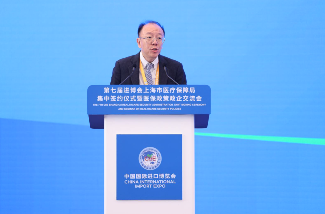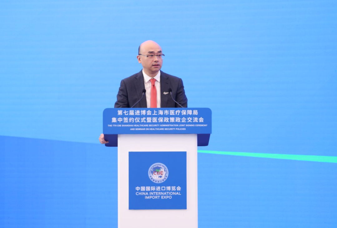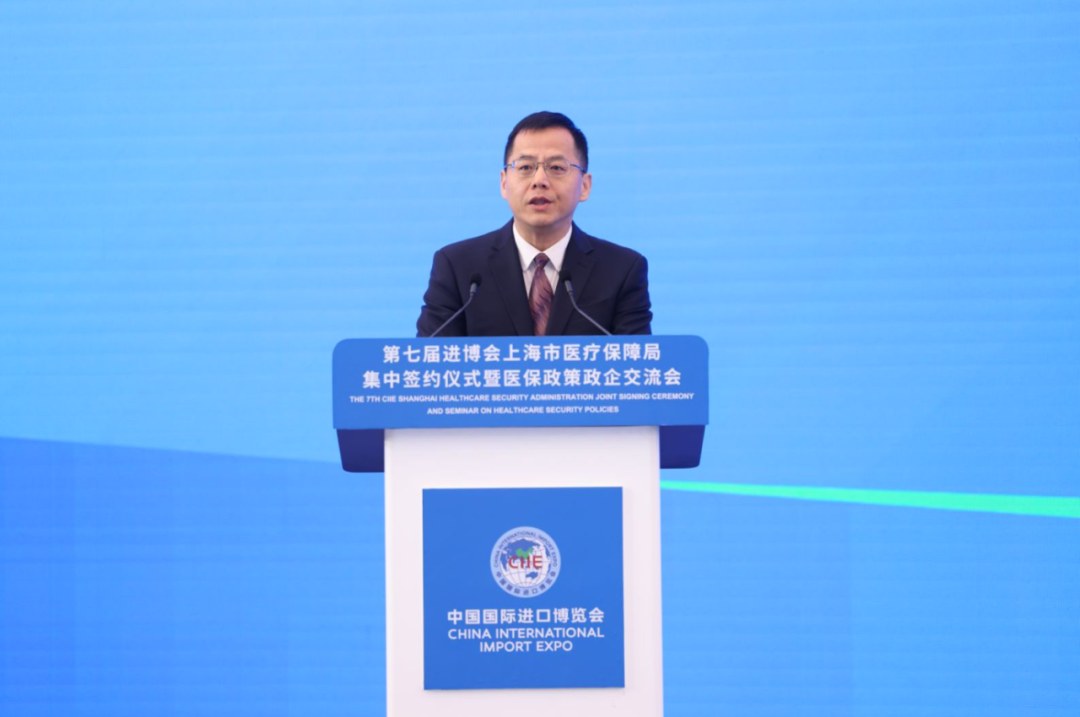 11月8日上午,第七届进博会上海市医疗保障局集中签约仪式暨医保政策政企交流会在国家会展中心(上海)顺利举办。作为第七届进博会医保主题系列活动之一,本次活动由上海市医疗保障局、中国国际进口博览局主办,上海市医药集中招标采购事务管理所(上海医药采购中心)、进博会参展商联盟药品专委会、医疗器械专委会承办。