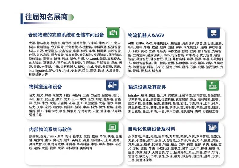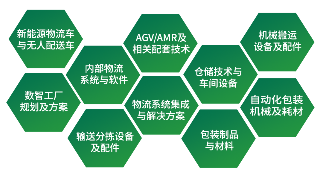 围绕 数智工厂、柔性制造、产线自动化、仓储智能化、供应链智慧物流以及机器人技术应用 这六大主题类目进行展示,为用户提供从生产端到仓储端,再由仓储端到配送端、零售端的自动化设备全流程解决方案的协同应用。