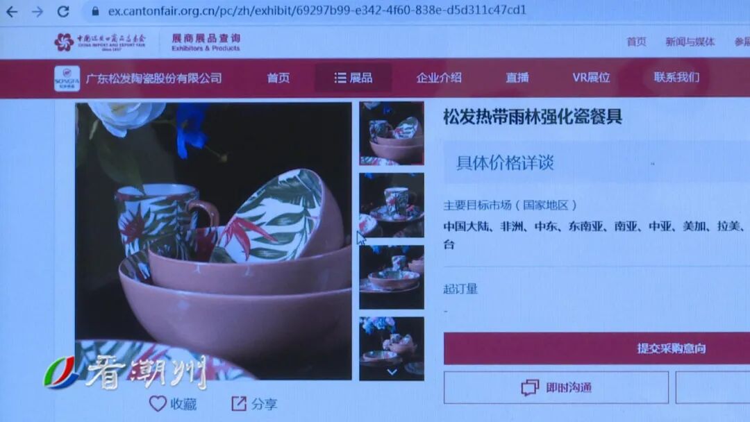 市庆发陶瓷有限公司副总经理 蔡安阳:很多客商也比较接受了线上广交会的形式,每天都会收到不同的咨询。除了我们熟门熟路的老客户之外,我们也收到一些新的客人。以前线下广交会时间比较短,客人走广交会的时间也有限,他不可能走到所有的工厂,厂家。线上广交会给了他们一些可能,就是触及很多没有触及的领域。