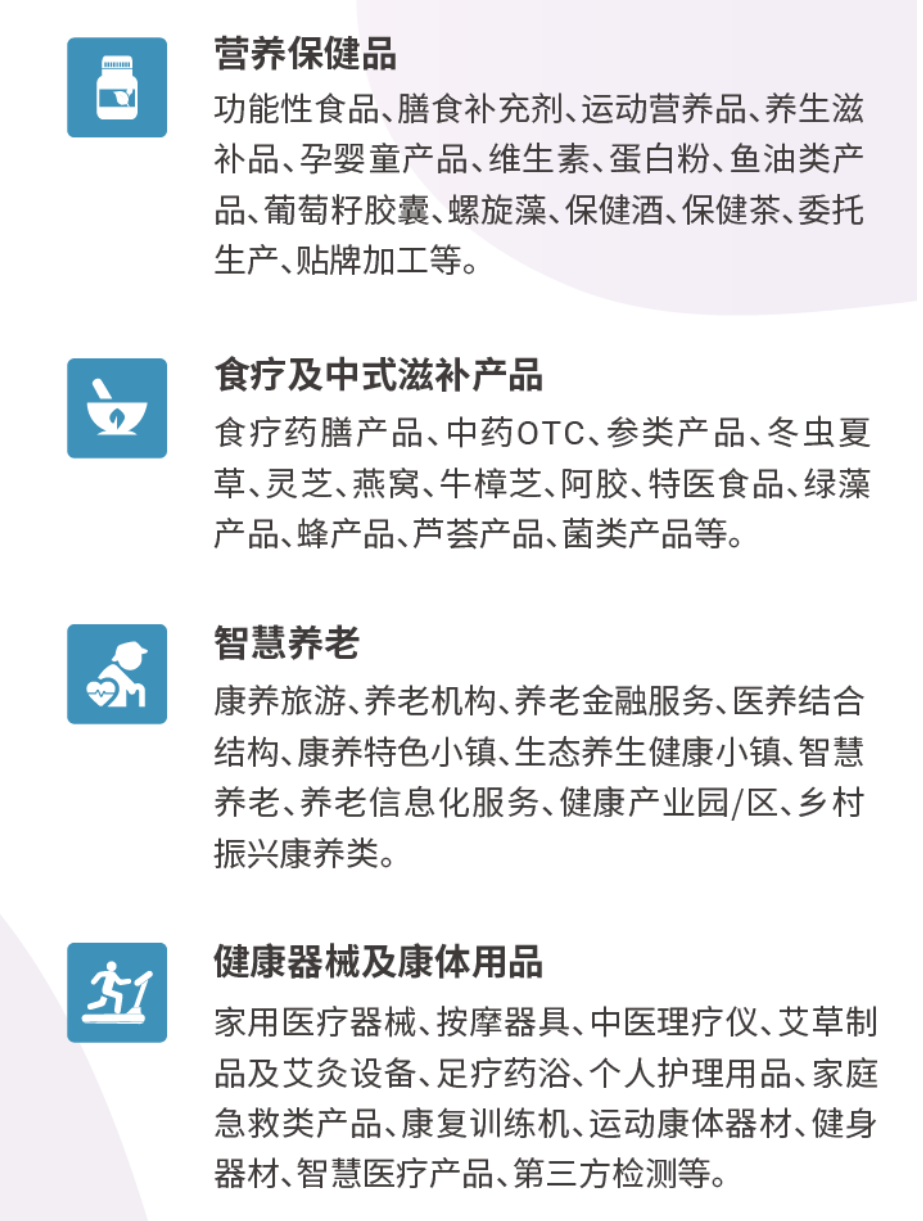 本届展会特别设立了蜂产品专区、健康美容专区、国际品牌专区、日本养老展团等多个特色展区,集中展示传统膳食补充剂、滋补养生品、创新的代餐食品、运动营养品,从天然香料/香精、采用先进技术提取的深海原料,以及以天然植物为本源的药品、功能性食品等丰富的产品线,几乎囊括了健康营养领域的所有方面,全力推动大健康产业的快速发展和高效成长。