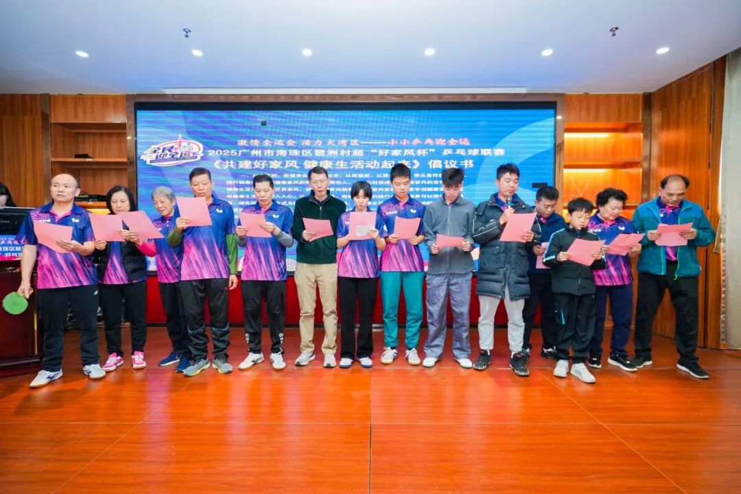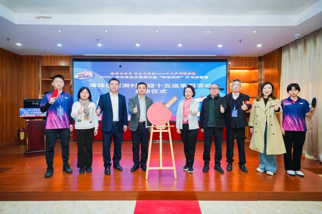 随后,领导嘉宾和运动员代表共同揭幕乒乓球拍造型牌,正式启动海珠区“琶洲村超”迎全运系列活动及海珠巾帼迎全运系列活动。启动仪式,象征着赛事的正式开启,也预示着海珠区将以此次赛事为契机,开展一系列丰富多彩的迎全运活动,打响“琶洲村超”品牌,进一步推动全民健身、弘扬体育精神、展示城市风采。