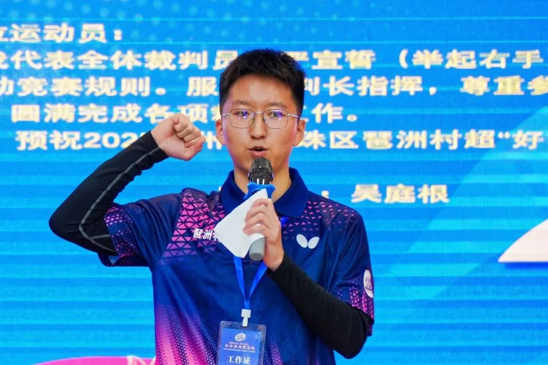 比赛开始前,由裁判员代表吴庭根、运动员代表谢东融进行宣誓。