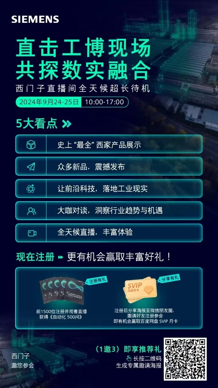 作为此次工博会期间西门子的重要活动之一,2024西门子工业论坛将于9月25日举行。通过展台直播、行业专家论道等形式,将精彩延伸至工博会现场之外,打造汇聚千位行业伙伴的线上盛会。