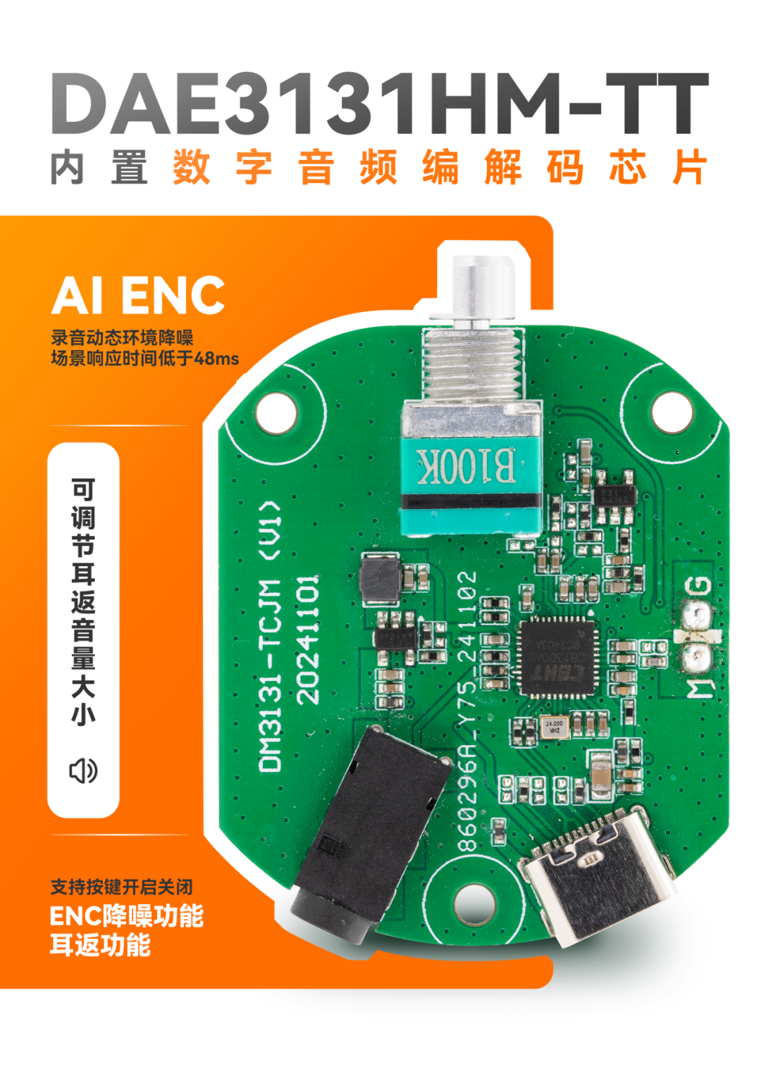 DAE3131HM-TT: AI-ENC录音动态降噪耳返功能