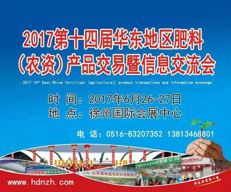 2017第十四届华东肥料(农资)产品交易于6月26日在徐州国际会展中心开幕,众多知名企业携新产品高调参展,敬请届时参观!