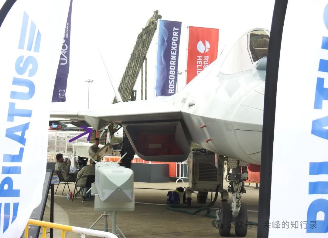 苏-57隐形战斗机的进气道和侧面导弹荚(箭头所指部位)