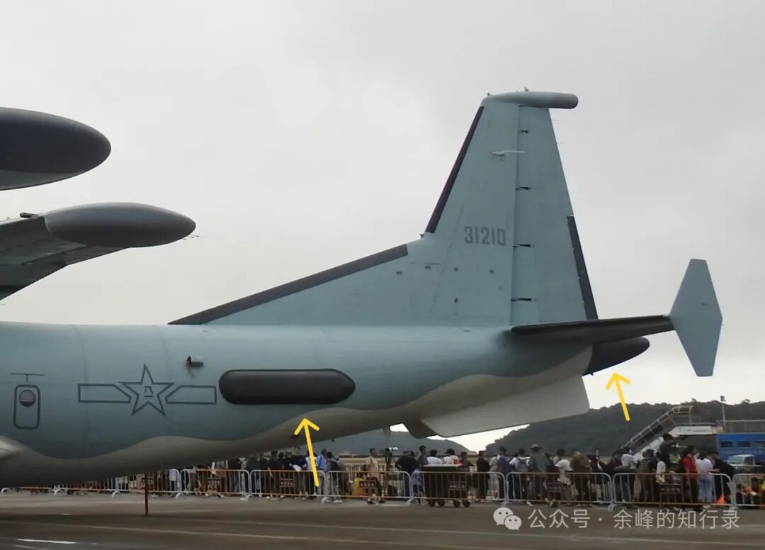 空警-500A共型阵相控阵雷达 | 如箭头所指,在后机身两侧以及机身尾椎位置,设计师还单独设计了三个“共型阵相控阵雷达”,可能用作反雷达侦察(ECM?)