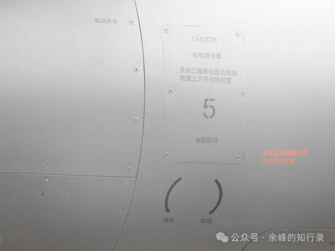 加油吊舱上的操作指示 | 软管由绞盘控制伸出和收回,顺时针收回,逆时针放出