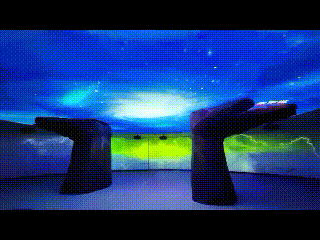 有多处小型放映室,滚动播放各展区相关的影像资料