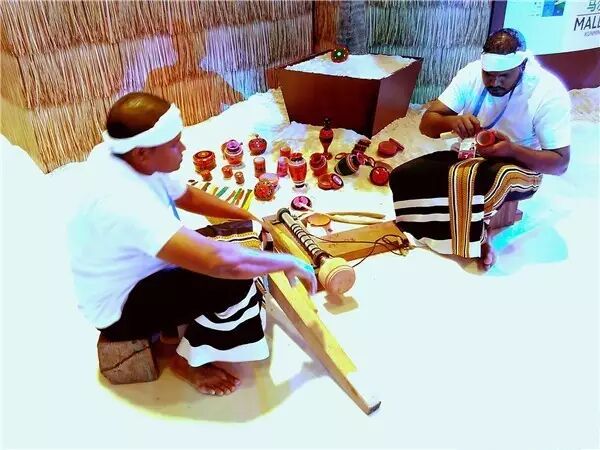 马尔代夫作为本届南博会主题国,为展现该国丰富旖旎的旅游文化,马代馆还专门从国内带来了细腻温润的海沙,这些沙子铺满展馆,仿佛一踏足馆内就来到了马尔代夫的海边。此外,马代馆还展示有该国特色手工艺品、别致草屋等。