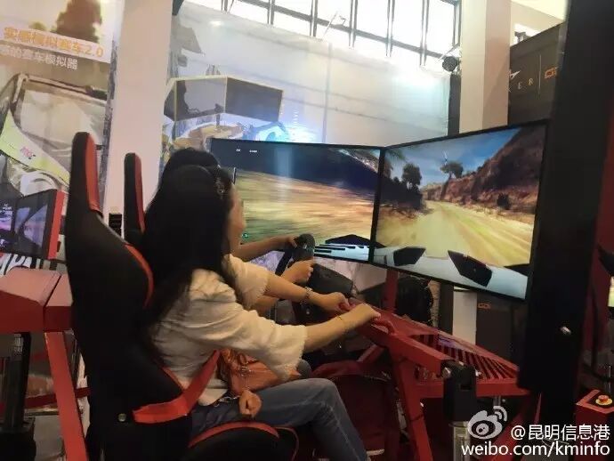 开着实感模拟赛车室内飙车,坐上模拟坦克在家打怪物。来3号信息化及信息产业馆扫码体验,付费10元,只要不“狗带”,就能一直玩。