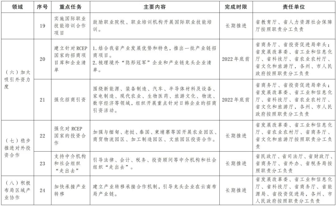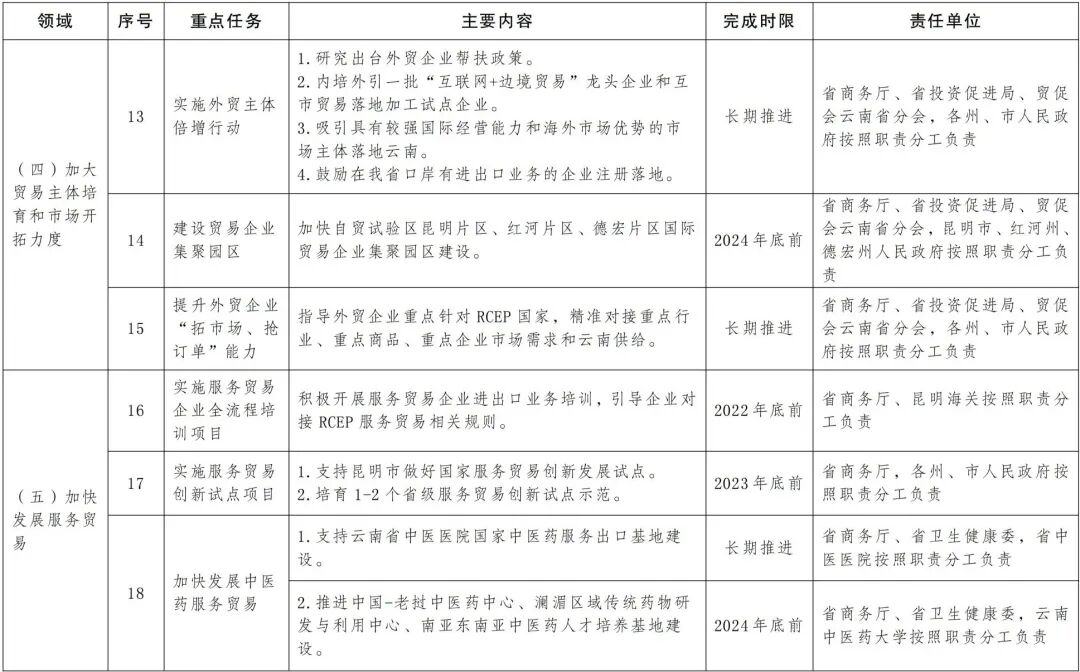 附件:云南省加快对接RCEP行动计划重点任务清单