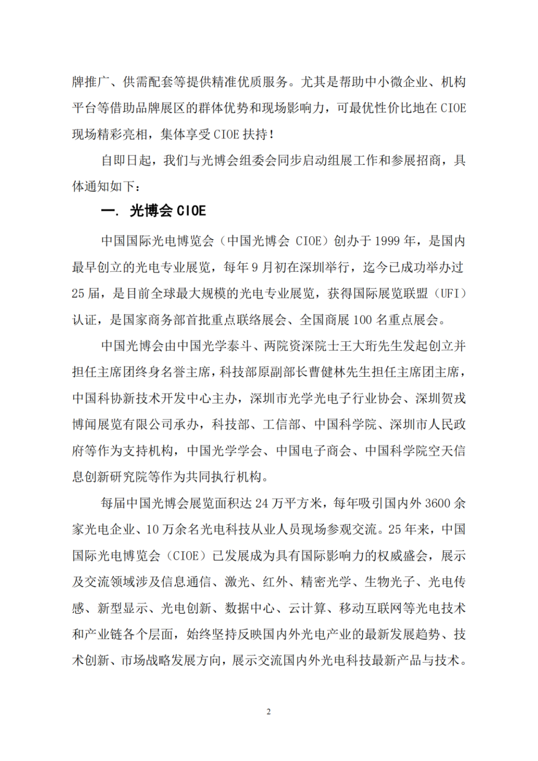 自即日起,我们与光博会组委会同步启动组展工作和参展招商,具体通知如下: