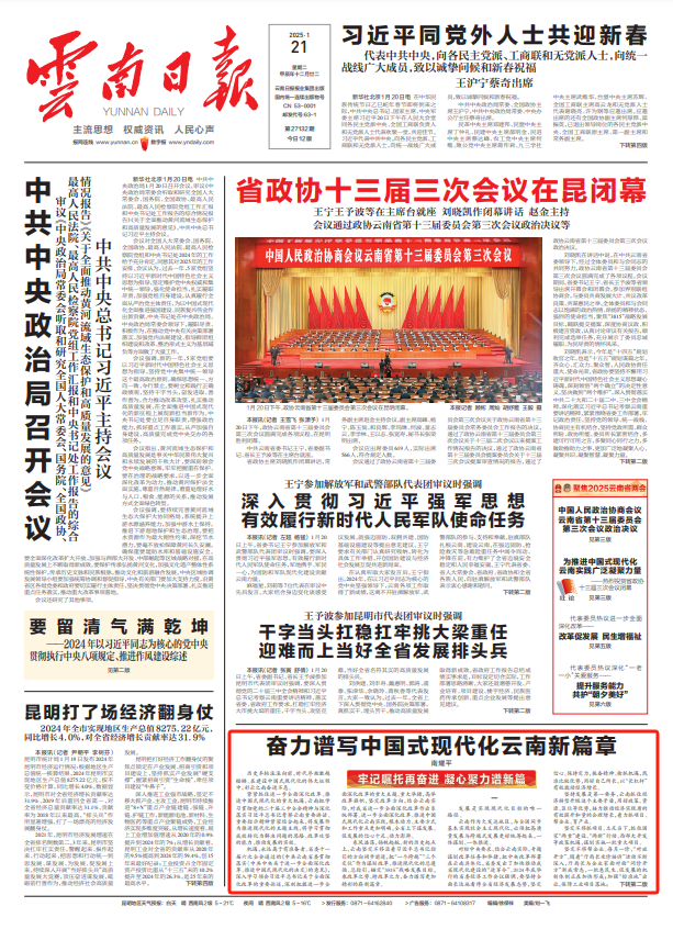 历史车轮滚滚向前,时代序曲激越铿锵。在建设中国式现代化的伟大征程中,彩云之南奋进不息。