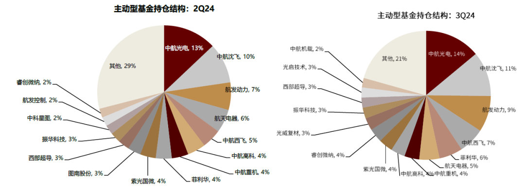 图表4:3Q24主动型基金航空航天科技行业重仓股结构变化