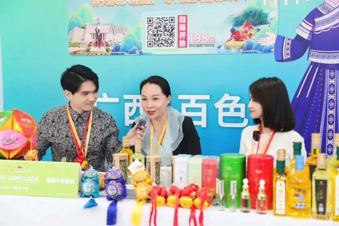 展会期间,广西广播电视台私家车930携手百色市文化广电体育和旅游局共同打造了百色旅游融媒体直播间,由百色相关县区文旅局长和旅游企业负责人坐镇直播间,直播当天的参展企业商品总销量超万元,为百色旅游宣传助阵,更加快速、直接、有效的助力文旅内容的推广。