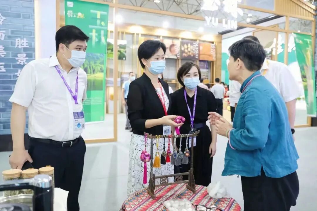 百色市人民政府副市长古俊彦(左二)与参展商交流