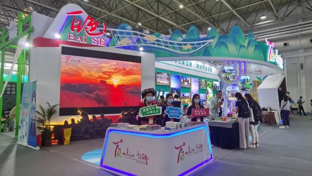 百色文化旅游特色展区位于广西旅游展区中心,以“约惠壮美红城 畅游千姿百色”为主题,整体设计在体现文旅融合的基础上进行了新的突破和提升,加入了更多文旅实景体验元素,将百色壮美的红色文化、奇山秀水、多彩民族、长寿真谛形象的展示给观众。本次旅游展通过精美视频播放、赠送文旅纪念品、文创产品展示、非遗技艺体验、特色美食品尝等形式开展,结合图文直播、宣传片、融媒体直播、小视频等多元内容线上线下充分联动,全方位生动、立体地呈现百色文化旅游资源的特色和优势。