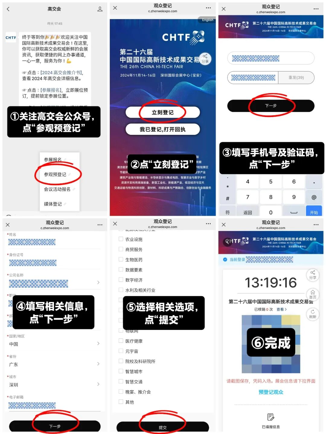 ①关注“高交会”公众号;点击下方“参观预登记”;