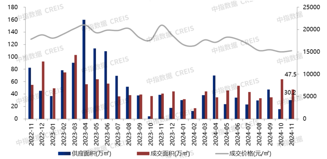 图:2022年10月-2024年11月佛山商品住宅供求价走势