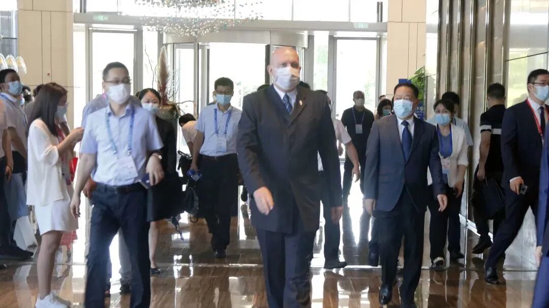 南昌国际博览城绿地铂瑞酒店总经理安东尼热情接待江西省政府副省长殷美根,商务部党组成员、副部长盛秋平等参会贵宾。