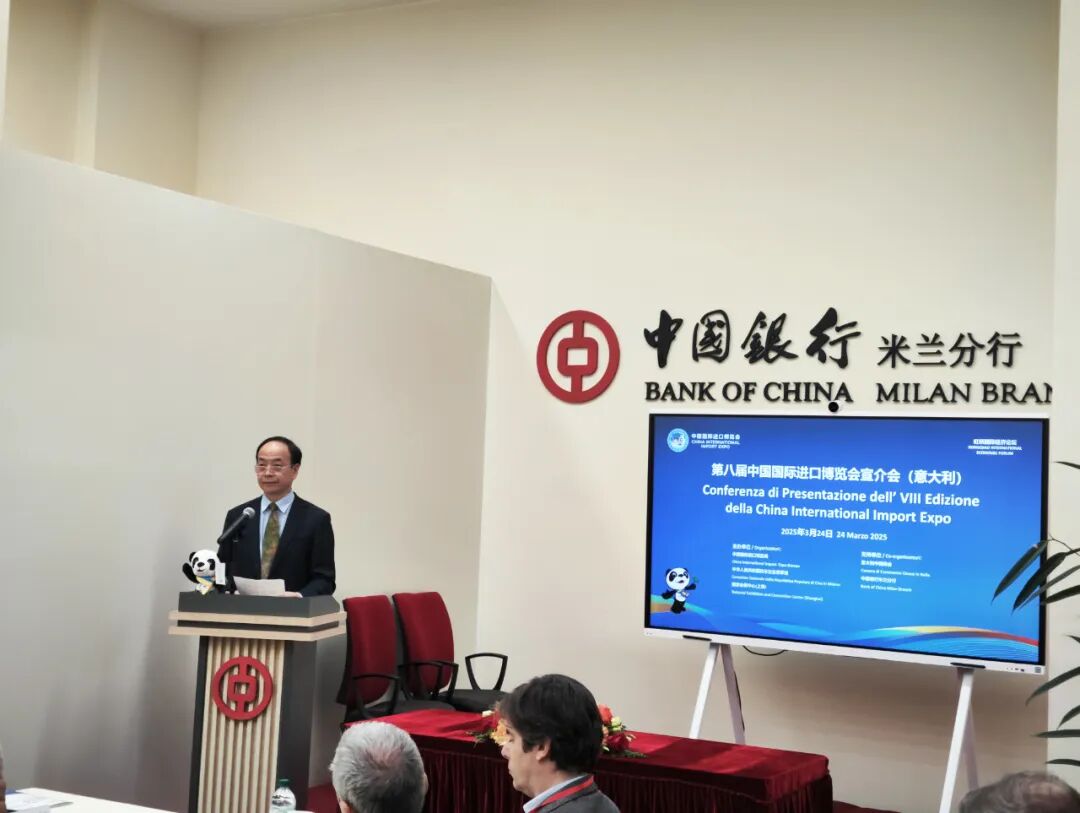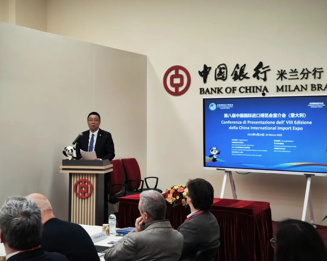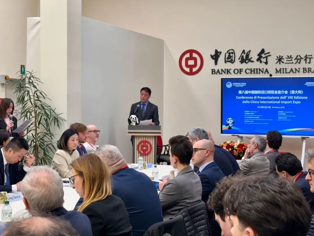 2025年3月24日下午,在中国驻米兰总领事馆、意大利中国商会、中国银行米兰分行的大力支持下,面向意大利企业的第八届进博会宣介会在米兰顺利举办。意大利机构及企业代表50余人参加宣介会。