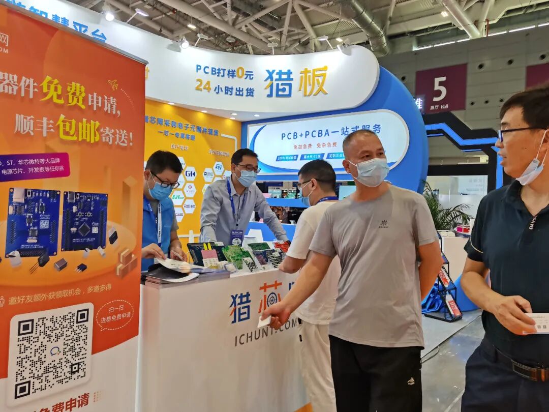 猎板携手母公司猎芯网亮相5号馆5G64展位,引来了大批电子行业人士参观咨询