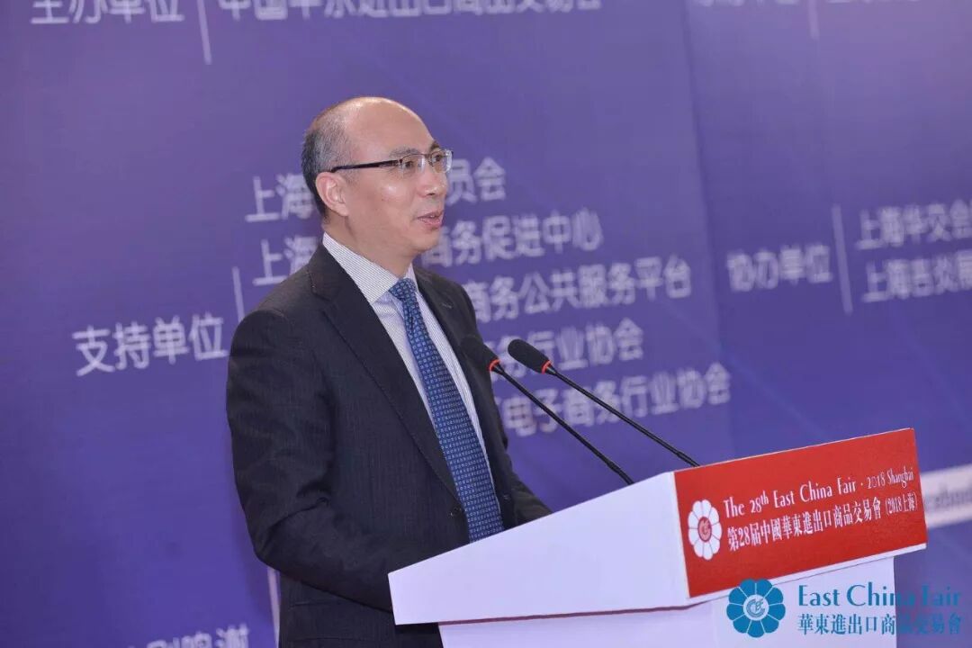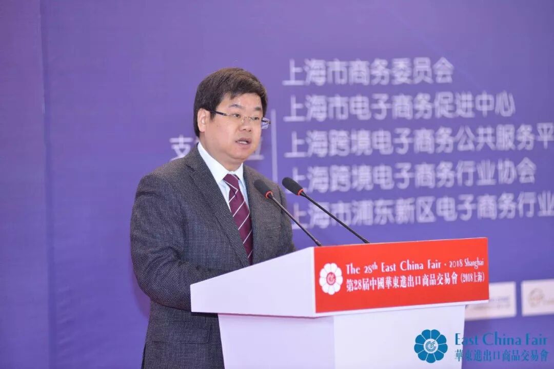 上海市商务委员会副主任申卫华在致词中表示,2018上海市商务委员会加快推进零售出口模式,优化操作流程、监管流程,实行清单申报、结算与邮政一起B2B出口,完善数据统计系统,资源配置。